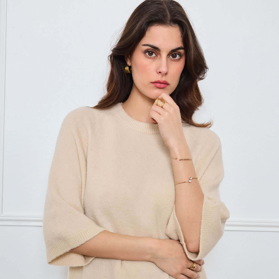 COL ROND AVEC MANCHES 3/4 LOUIE BEIGE