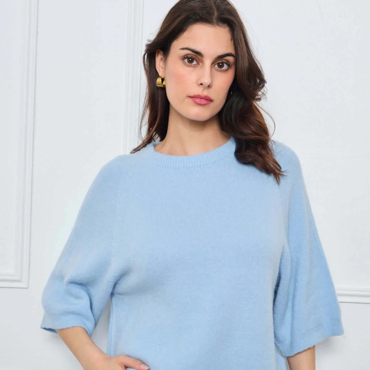 COL ROND AVEC MANCHES 3/4 LOUIE BLEU CLAIR