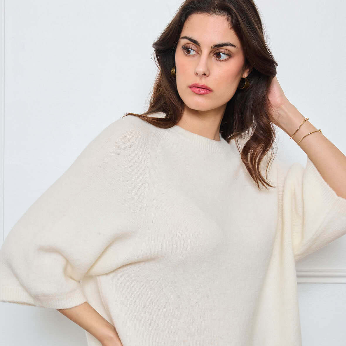 COL ROND AVEC MANCHES 3/4 LOUIE BLANC